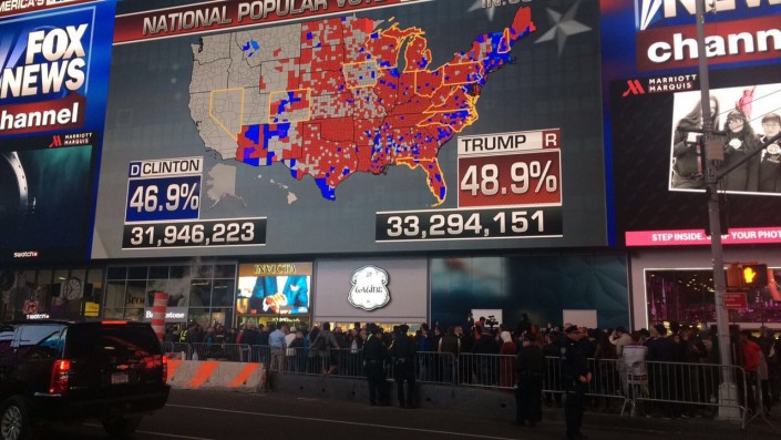 По подсчетам СМИ, Трамп победил в нескольких ключевых штатах, в том числе во Флориде, Северной Каролине, Юте, Вашингтоне. Клинтон побеждает в Орегоне, Калифорнии и Гавайи.