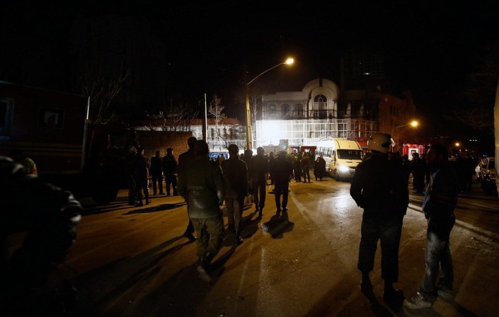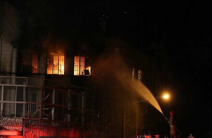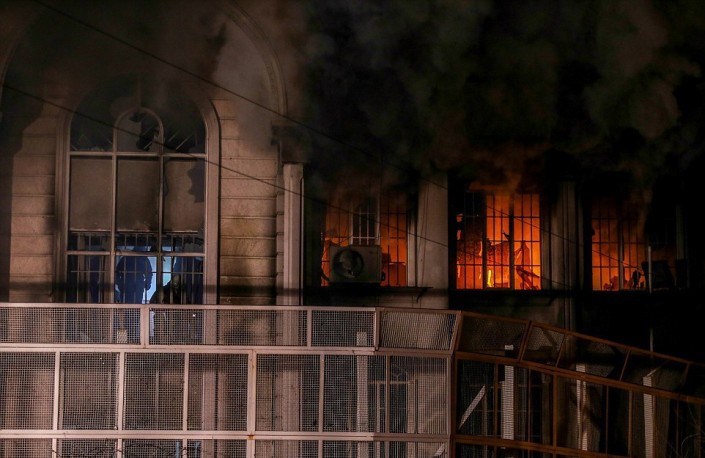 В здание посольства попало несколько "коктейлей Молотова". © AFP