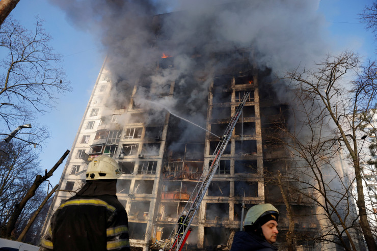 Российские снаряды попали в три многоэтажки в Подольском и Святошинском районах Киева. Сообщается, что в результате попадания боеприпаса в шестнадцатиэтажный жилой дом произошло значительное разрушение здания с последующим возгоранием с первого по шестнадцатый этаж. По предварительной информации, на месте происшествия обнаружены тела двух погибших.