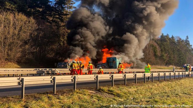 Как сообщила немецкая полиция, водитель грузовика, участвовавшего в аварии, был убит на месте происшествия. В настоящее время среди военнослужащих США не было раненых, хотя восемь солдат были доставлены в больницу для обследования, сообщил представитель учебного командования 7-й армии Дональд Ренн. По данным полиции, авария привела к столкновению нескольких транспортных средств и вызвала пожар.
