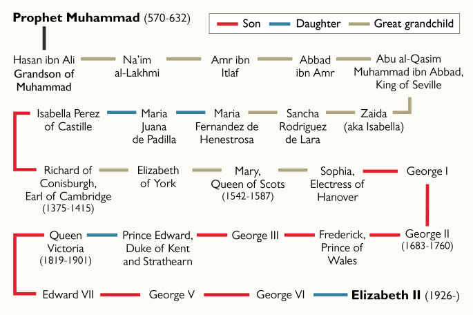Автор статьи утверждает, что Елизавета II могла состоять в родстве с мусульманскими королями, которые правили Испанией, и через них - с основателем ислама. В качестве доказательства даже приводится родословная королевы до 40-го поколения. Такое родство, пишет автор, "наводит мосты" между двумя религиями и королевствами.