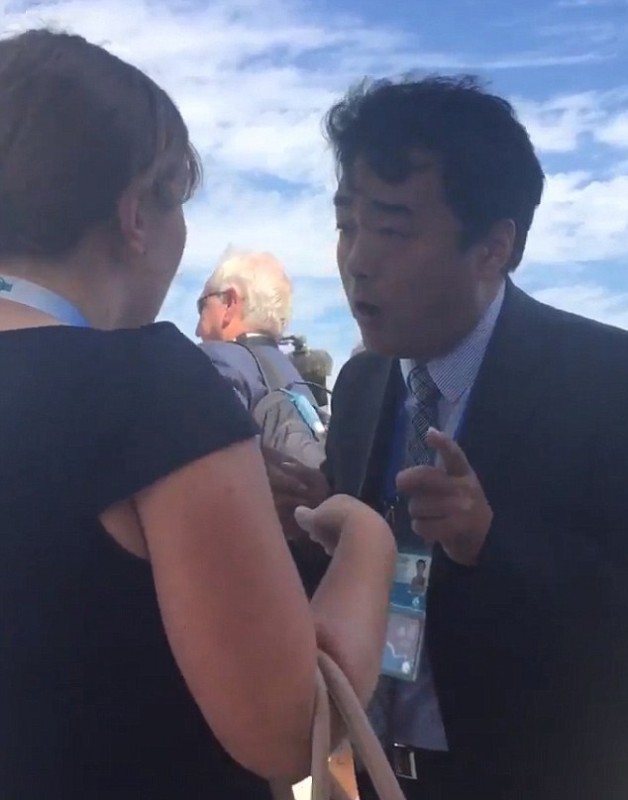 После этого перед самолетом вспыхнул конфликт между помощницей Обамы и сотрудником китайского протокола. Репортеры из президентского пула и американские чиновники, попытавшиеся выйти на взлетное поле и сфотографировать приезд главы США, были оттеснены в сторону китайскими представителями.