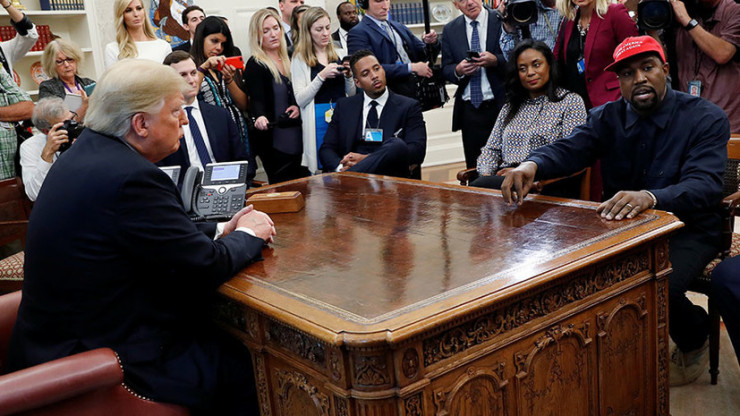 Канье Уэст бұл кездесуге Трамптың "Американы қайтадан ұлы етеміз" деген ұраны жазылған қызыл бейсболкамен барған. Сол кезде Трампқа "Канье келесі президент болуы мүмкін бе?" деген сұрақ қойылған кезде, ол: "Әбден мүмкін" деп жауап берген.