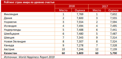 Названы самые счастливые страны мира. Список возглавила Финляндия. В рейтинге стран мира по уровню счастья Казахстан занял 60-е место из 156 и расположился между Гондурасом и Боливией, передает Tengrinews.kz со ссылкой на Ranking.kz.