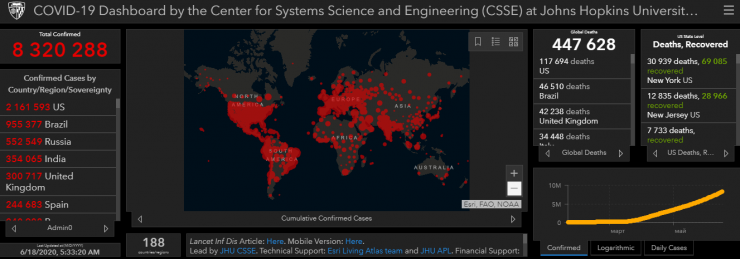 Число заразившихся коронавирусом в мире к утру 18 июня превысило 8,3 миллиона человек. Об этом свидетельствуют данные проекта Университета Джонса Хопкинса, передает корреспондент Tengrinews.kz.