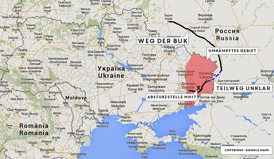 Так, по данным немецких журналистов, на позицию, с которой обстреляли Boeing, ракетный комплекс доставили военнослужащие курской 53-й зенитно-ракетной бригады с целью защиты российских танковых дивизий, воевавших на украинской территории без опознавательных знаков.