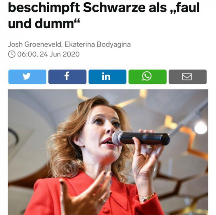 "Немецкое издание вышло с заголовком "Ксения Собчак назвала чернокожих людей глупыми и ленивыми" и обвинило меня в расизме. Это прямая ложь. Таких слов я никогда не произносила. И уж тем более не разделяю этих взглядов. Я буду требовать публичных извинений. Моя позиция предельно ясна. Люди НЕ делятся на белых и черных, кавказцев и азиатов. Но люди делятся на умных и глупых. На тех, кто имеет свое мнение, и тех, кто идет за толпой. Я не поддерживаю любой протест в любой стране, когда он связан с насилием. Для меня главные ценности - это жизнь, свобода и частная собственность. И да, мои взгляды - это праволиберальные взгляды. Я против квотирования и тотального расформирования полиции. Я против грабежей и вандализма. Видимо, в нашем стремительно левеющем мире такие взгляды уже вне закона. Но я никогда не боялась давления на себя внутри страны, не боюсь его и извне", - написала она в Instagram, сопроводив пост хештегом #ямычерчилль.