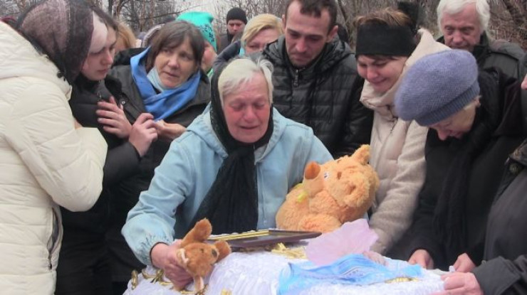 Миссия ОБСЕ подтвердила гибель мальчика от взрыва в Донбассе Похороны 5-летнего Владика. Кадр из видео News Front