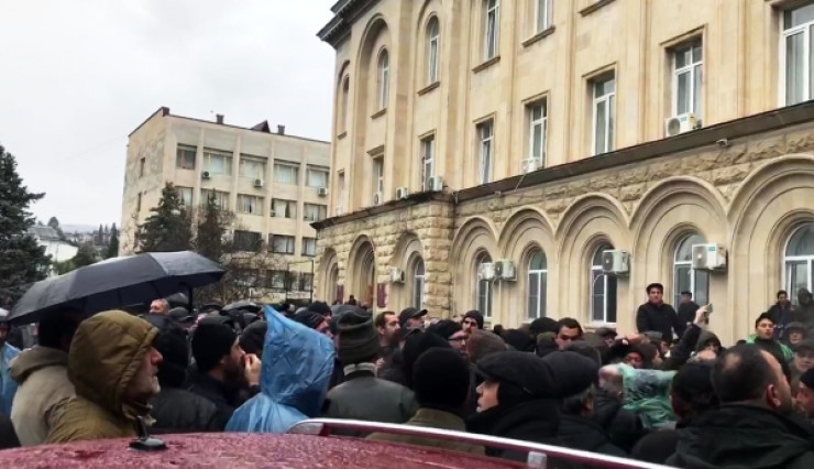 По данным издания, собравшиеся требуют признать незаконными прошедшие в республике президентские выборы, победу в которых одержал Рауль Хаджимба. Штурм начался в 13:00 на площади перед зданием администрации. Двери здания сломаны, их сняли с петель и унесли.