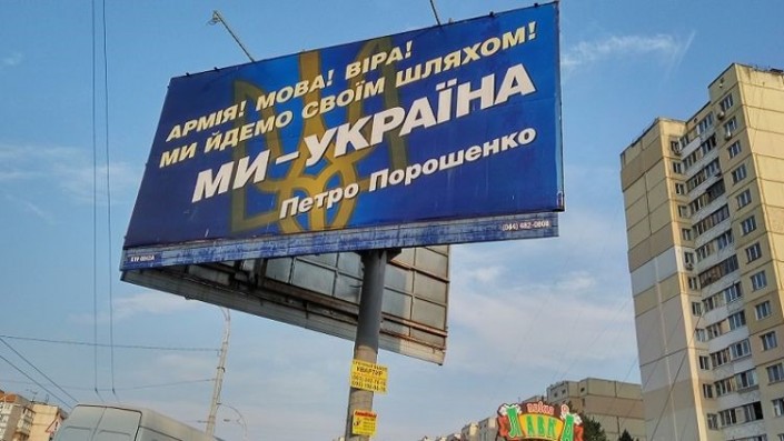 Сам Петр Порошенко для своей избирательной кампании выбрал слоган "Армия! Язык! Вера! Мы идем своим путем! Мы - Украина". На лозунг тут же отреагировали пользователи соцсетей и высмеяли его: "H&M! IKEA! Томос!", намекая на такие достижения президента, как открытие магазинов и представление стране Томоса об автокефалии.