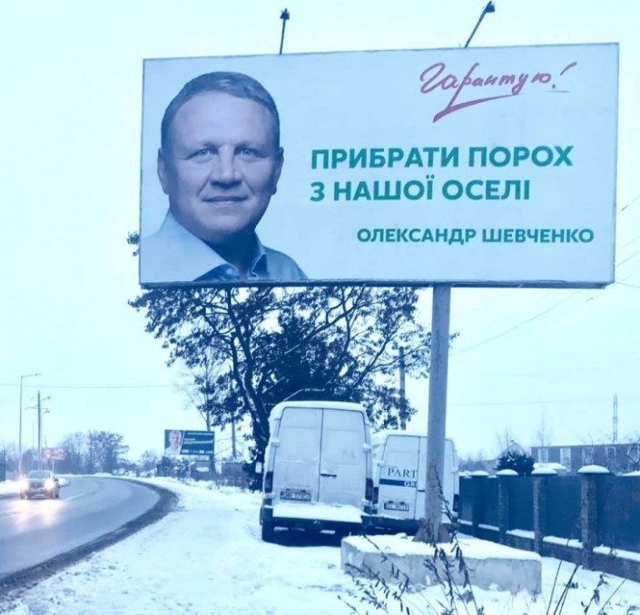 Одним из обсуждаемых и даже скандальных успел стать билборд кандидата Александра Шевченко. Политик "гарантирует убрать порох из нашего дома". Такой призыв украинцы сочли намеком на прозвище действующего президента Украины Петра Порошенко.
