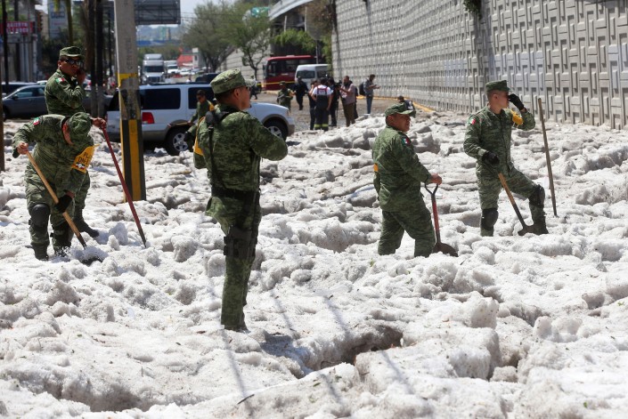 Мексиканский город Гвадалахара оказался погребенным под слоем льда после аномально сильного града. Град такой силы был зарегистрирован здесь впервые, сообщает издание Economista, передает Tengrinews.kz со ссылкой на РИА Новости. Также стихия, только в снежном обличье, наблюдалась в одном из районов Грузии, сообщают "Новости-Грузия".