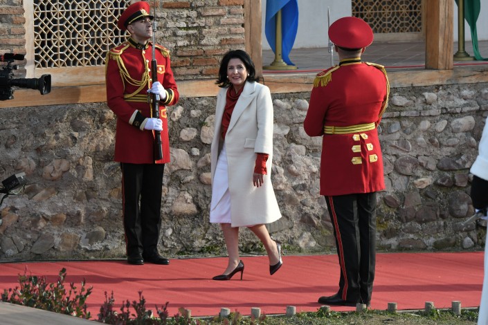 В воскресенье, 16 декабря, в грузинском городе Телави состоялась инаугурация нового президента Грузии Саломе Зурабишвили. Церемония прошла в крепости Батонис на территории сохранившегося царского комплекса - резиденции Ираклия II, сообщает телеканал TRT.