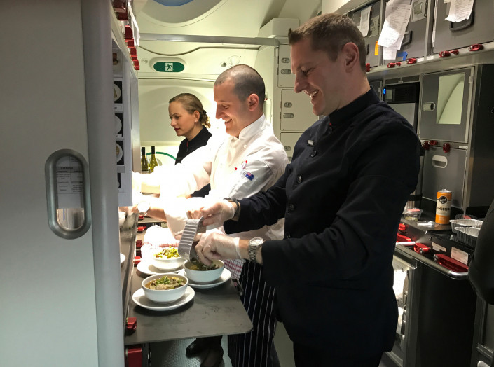 Участники полета рассказали, что в первую очередь их удивило то, что бортпроводники подали ужин вместо завтрака, несмотря на то, что борт вылетел из Англии ранним утром. В частности, им предложили сэндвичи со стейком, суп и вино.