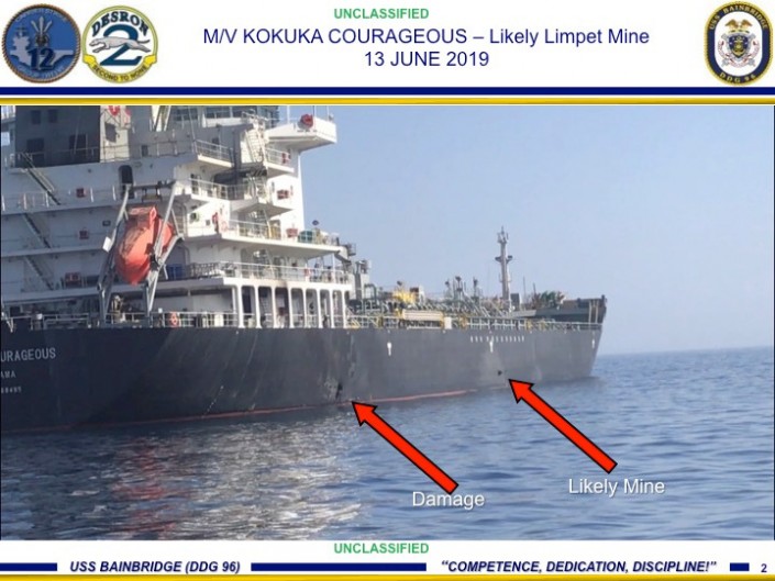 Иранские и арабские СМИ в четверг сообщили, что в Оманском заливе совершено нападение на два нефтяных танкера - Front Altair и Kokuka Courageous. По некоторым данным, один из танкеров атаковали торпедой, другой - миной. Однако официального подтверждения того, что причиной инцидентов стало именно это, нет. Все члены экипажей пострадавших судов были эвакуированы на территорию Ирана.