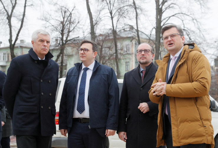 Посольство Франции в Киеве пока не дает рекомендации для граждан покинуть Украину. Однако диппредставительство предлагает французам запастись едой, водой, топливом и теплой одеждой. Также посольство рекомендует отложить поездки в Украину, а тем, кто остается в стране, "проявлять повышенную бдительность".