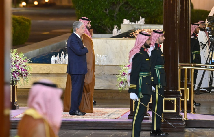 Начальник почетного караула отдал рапорт руководителям двух стран. После исполнения гимнов Казахстана и Саудовской Аравии Касым-Жомарту Токаеву и Наследному принцу Мухаммеду бен Салману бен Абдель Азизу Аль Сауду представили членов официальных делегаций.