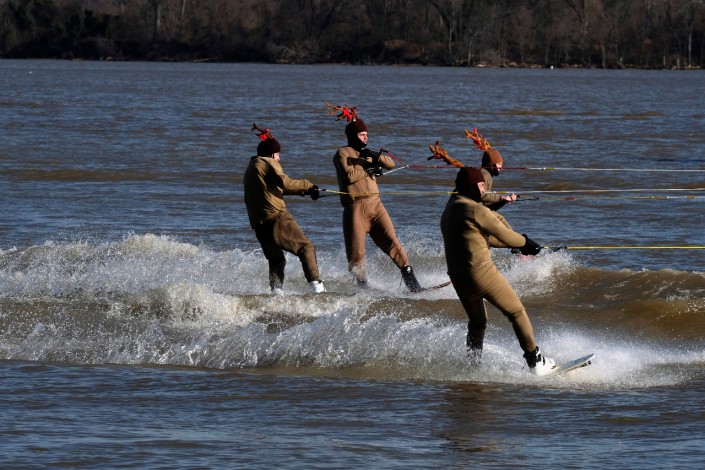 Некоторые жители американского штата Вирджиния из-за отсутствия снега развлекаются на водных лыжах.