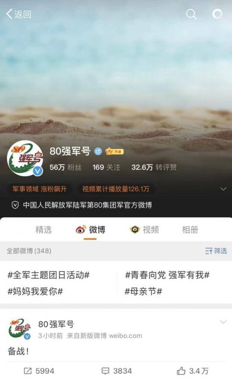 Пост из двух иероглифов "Готовьтесь к войне!" собрал более 300 тысяч лайков и 19 тысяч комментариев за 12 часов на фоне планируемого визита на Тайвань спикера Палаты представителей США Нэнси Пелоси.