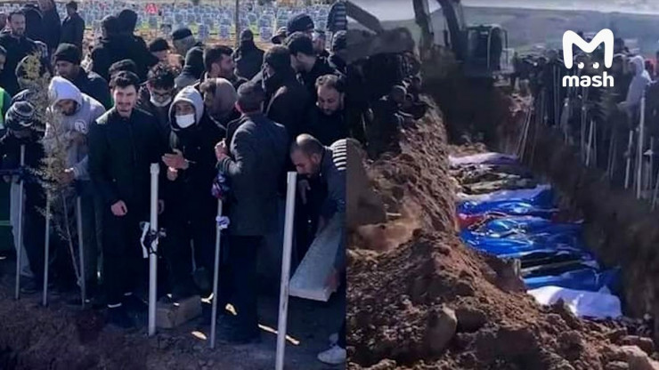 По данным Telegram-канала, из-за масштабов трагедии религиозные лидеры разрешили отказаться от части похоронных традиций. Например, вместо савана погибших погребают в патологоанатомических мешках. Эксперт Верховного совета по делам религий Серасеттин Йылдыз объяснил это так: чтобы живые не заразились каким-нибудь вирусом.