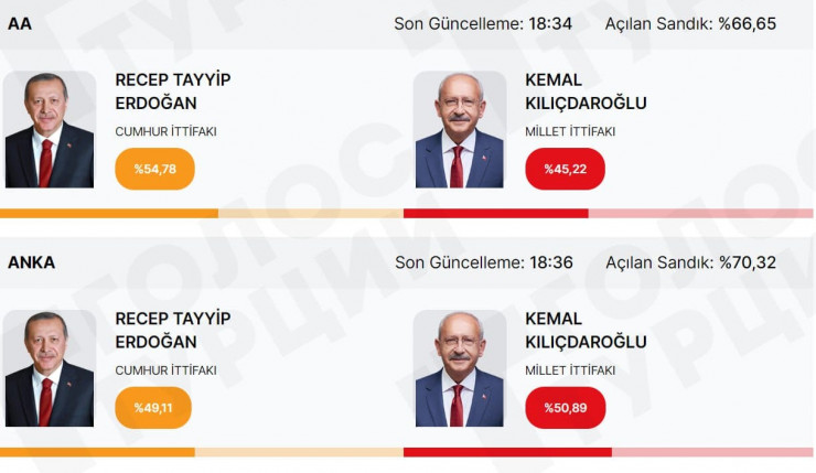 Проправительственное турецкое агентство Anadolu и оппозиционное агентство Anka опубликовали первые результаты голосования во втором туре выборов президента Турции, передает Tengrinews.kz со ссылкой на телеграм-канал "Голос Турции".
