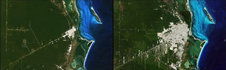 Эффекты урбанизации можно увидеть на спутниковых снимках Канкуна, Мексика. С 1985 по 2019 годы обедневший город с населением 100 человек превратился в место отдыха, которое ежегодно посещают 2 миллиона человек. На Канкун приходится четверть доходов Мексики от туризма, но его рост привел к экологическим издержкам, включая загрязнение воды и эрозию пляжей, заявило НАСА.