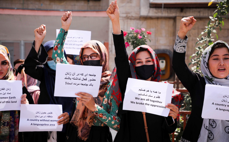 Тәліптер елде демократия болмайтынын айтты, бірақ халықтың, әсіресе әйелдердің құқығын қорғауға уәде берген. Бірақ, РИА Новости мәліметінше, әйелдер бүгінге дейін көшеде еркін жүре алмайды, опа-далап қолдануға, қоғамдық орындарда түрін көрсетуге тыйым салынған. Тәліптер билікке келгелі әйелдер митингке жиі шығып тұрады.
