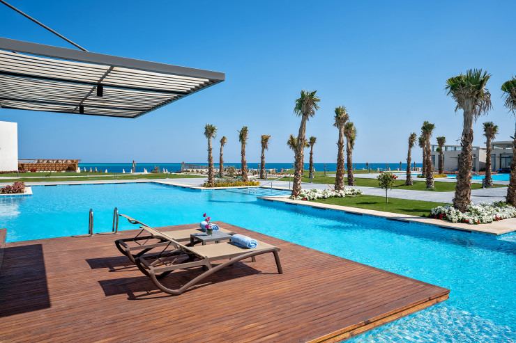 И это не просто отель с высокими стандартами обслуживания, которые присущи всей гостиничной сети Rixos. Новый отель рушит стереотипы и предлагает размещение исключительно в люксах и виллах. Всего на территории площадью в 23 (!) футбольных поля построено 410 роскошных люксов и вилл, причем самый маленький из них 53 квадратных метра.