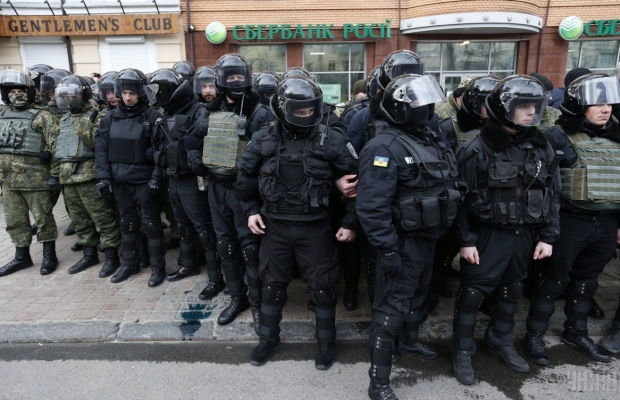 Между тем, как сообщалось ранее, днем в центре Киева неизвестные лица камнями разбили стекло в витринах Альфа-банка, Сбербанка России и в офисе бизнесмена Рината Ахметова. Полиция открыла четыре производства по погромам в российских банках и офисе Ахметова в Киеве.