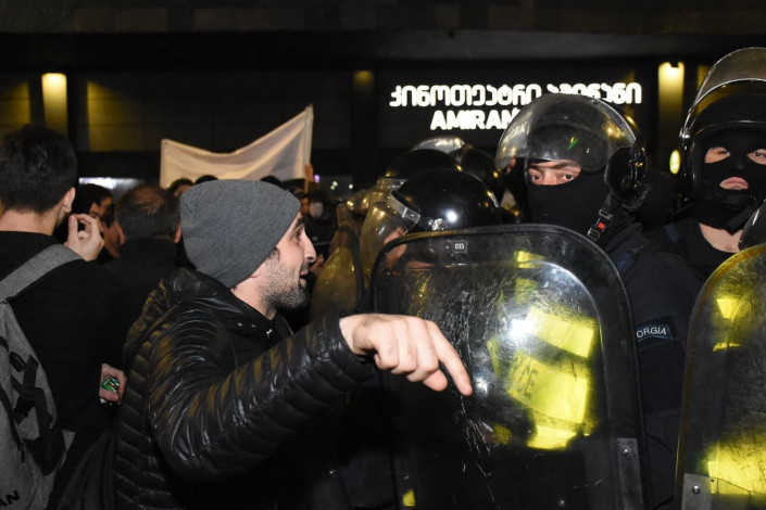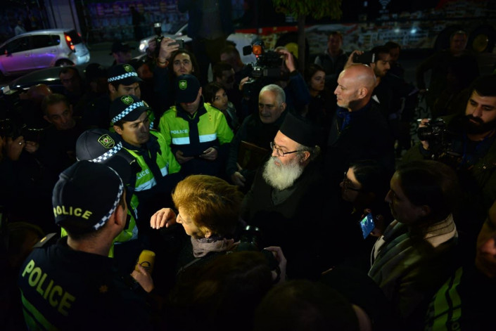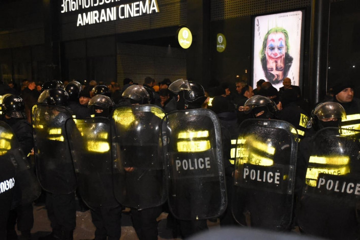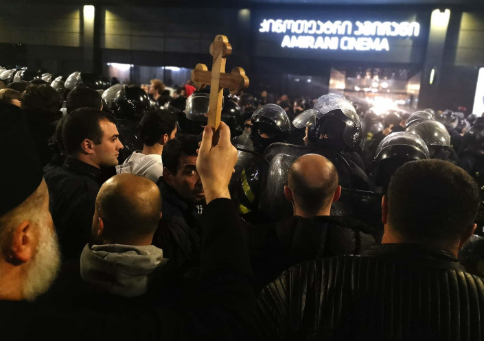 По данным МВД Грузии, полиция задержала 25 человек в Тбилиси и трех человек в Батуми, которые протестовали против скандальной картины.