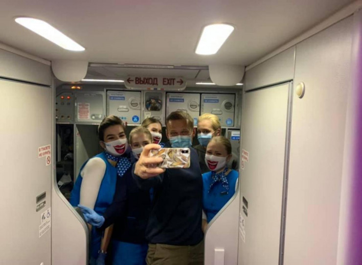Бортпроводницы "Победы" и супруги Навальные. Фото Елизавета Антонова/meduza