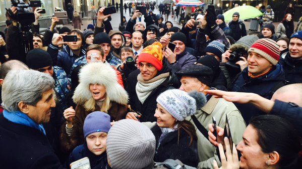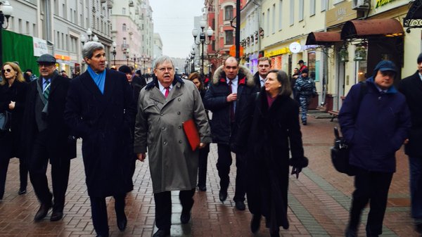 Госсекретарь США Джон Керри во время визита в Москву 15 декабря совершил прогулку по Старому Арбату. Высокого гостя сопровождали его помощница Виктория Нуланд и посол США в России Джон Тефт. Фотографии с этого события опубликовал в Twitter пресс-секретарь американского посольства Уильям Стивенс.