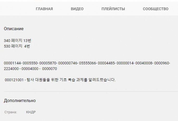 В то же время сообщение похожего содержания, но с другими цифрами, размещено в описании самого Youtube-канала Pyongyang Broadcast Service. Неизвестно, с какого момента оно присутствует на канале, однако это дает основания полагать, что это не "первый раз", когда тот используется для трансляции "кодированных" сообщений.