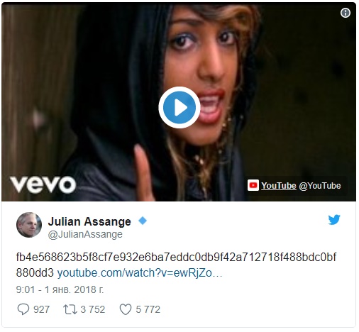 Основатель WikiLeaks Джулиан Ассанж опубликовал утром 1 января загадочный твит, который не дает покоя сотням пользователей, передает РИА Новости.