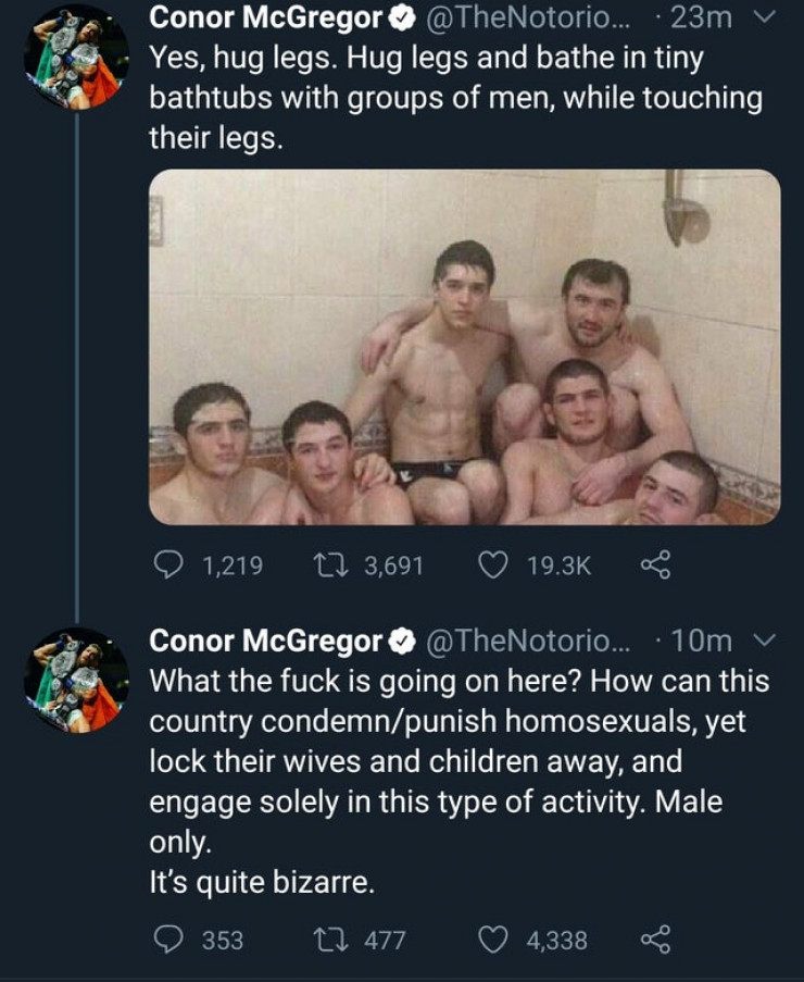 В ответ на слова россиянина МакГрегор высмеял фото Нурмагомедова в джакузи.