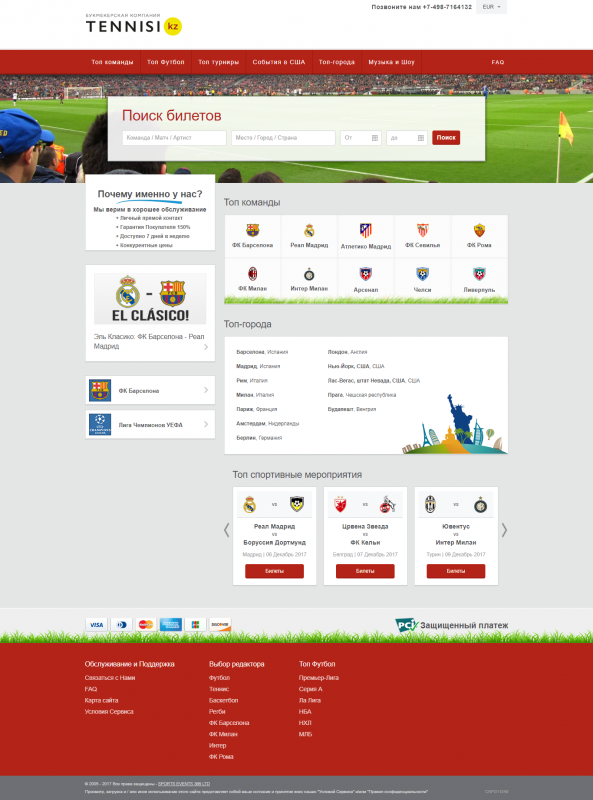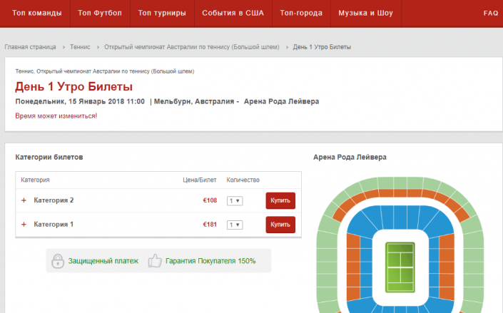Добавим, что на tennisi.tickets-partners.com доступны билеты на матчи Лиги чемпионов, Лиги Европы и клубного чемпионата мира, а также на игры чемпионатов Англии, Германии, Испании, Италии, Франции, Голландии, Португалии и Турции.