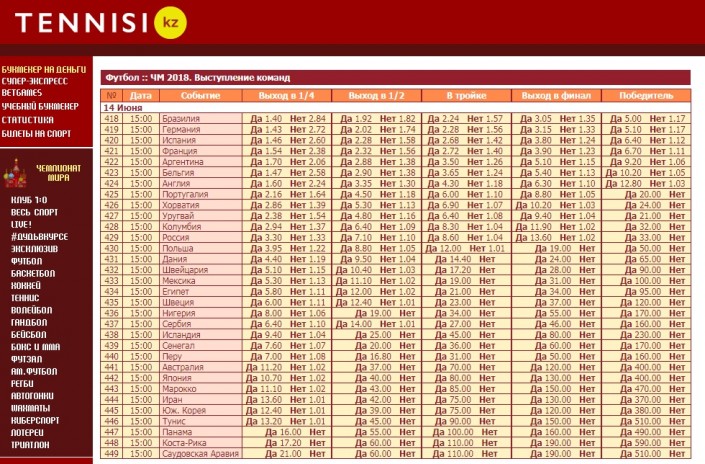 Меньше месяца остается до старта чемпионата мира по футболу в России. Специально к этому событию букмекерская компания Tennisi.kz подготовила несколько линий на нестандартные ставки, передает Tengrinews.kz.