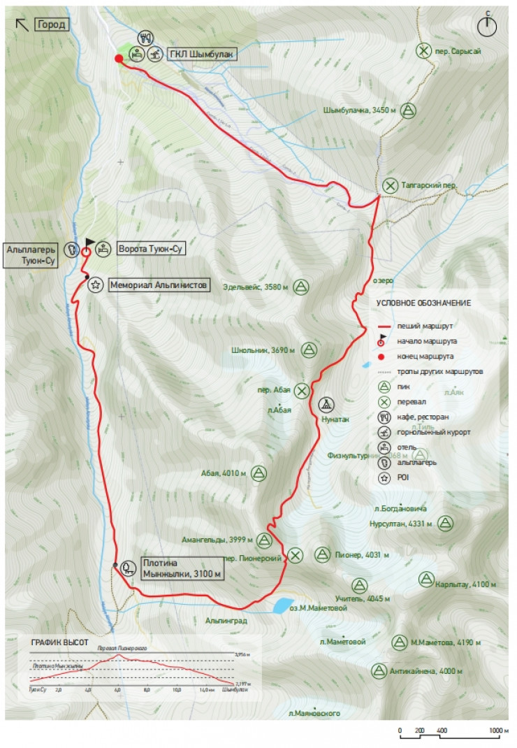 Описание: альпинистский лагерь "Туюк-Су" - Мынжилки - перевал Пионер - Шымбулак