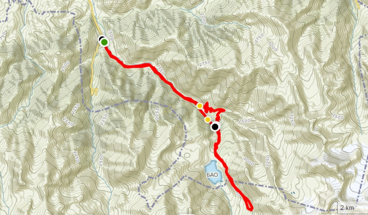 Описание: BS 28 (остановка автобуса № 28) - ГЭС-1 - Большое Алматинское озеро - подножие пика Сатпаева (Советов). Спуск по пути подъема.
