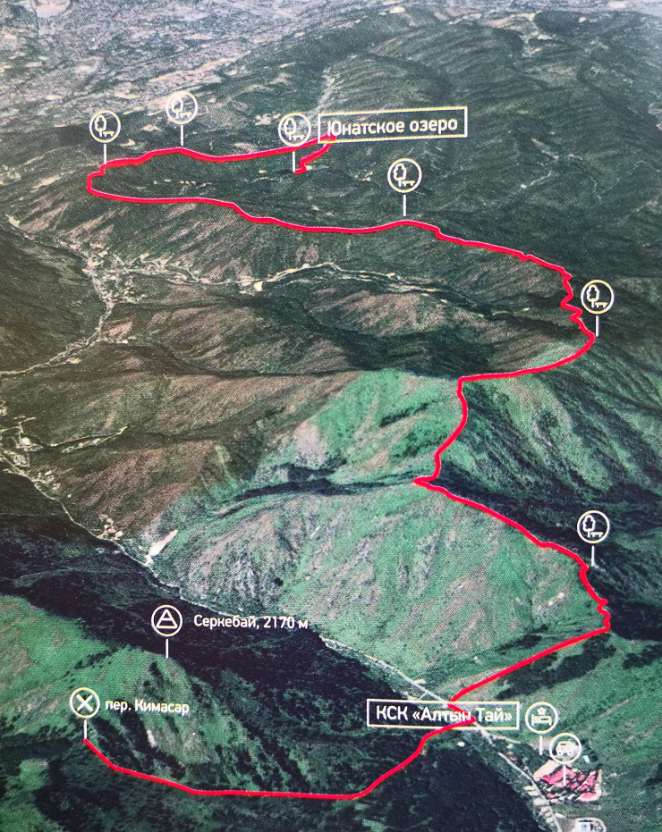 GPS координаты: Юннатское озеро - 43.2073341, 77.0151418, перевал Кимасар - 43.1713435, 77.0829749